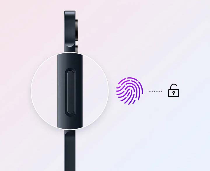 Avec le capteur d’empreinte digitale placé sur le côté, déverrouiller votre smartphone n’a jamais été aussi facile. Une simple pression suffit pour une identification rapide et sécurisée. Ce capteur pratique vous offre également la possibilité d’accéder instantanément à votre appareil photo ou à vos applications préférées grâce à un double appui personnalisable.
